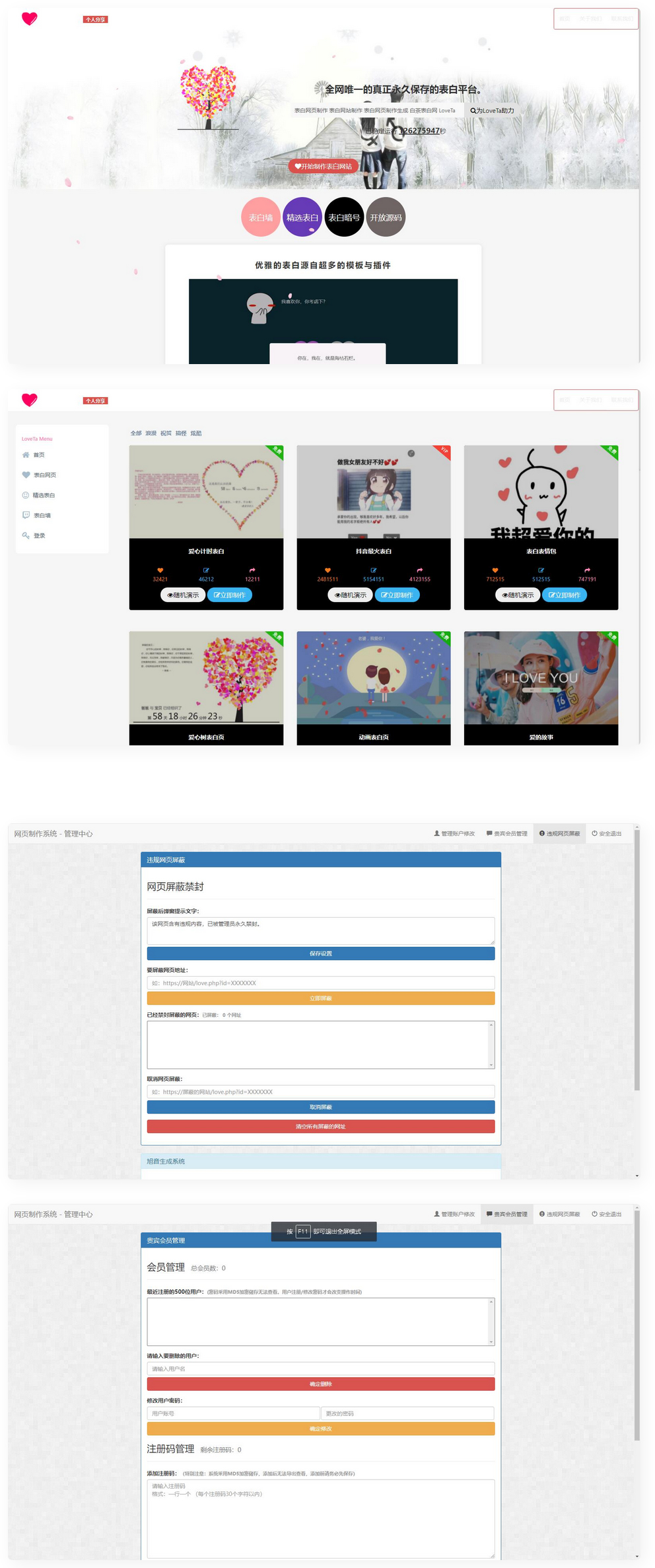 主要是用来一键生成表白页面在线制作生成源码,让制作网页变更更简单,