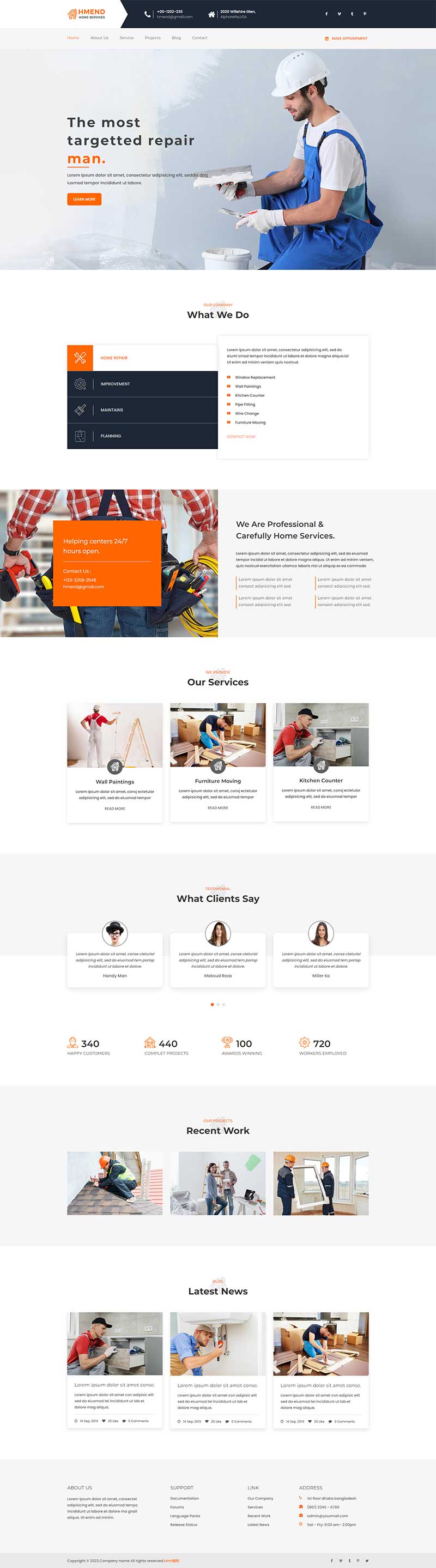 家庭维护维修服务公司网站模板是一款适合从事家庭维修维护服务行业HTML5网站模板下载。