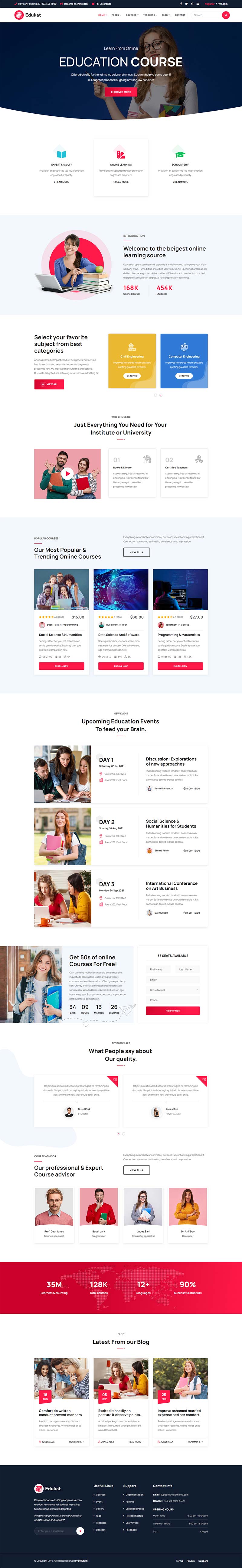 一款响应式的教育培训和学习管理系统HTML5模板,包含25+个页面和4个主页。培训中心、课程中心、学院、大学、学校、幼儿园、在线/现场课程、在线课程、教师简介、扩展用户简介、课程管理、排名/评分系统、跟踪课程进度等模块页面。