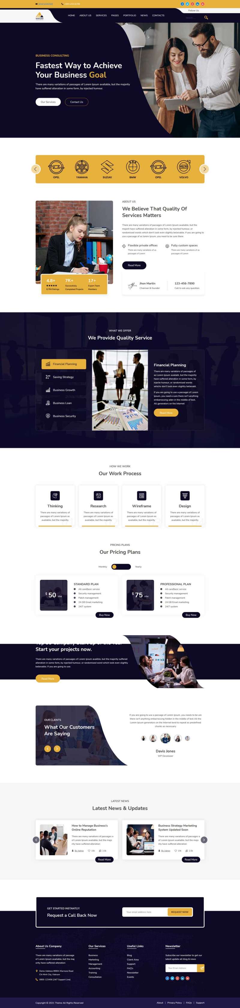 一款大气的商业咨询服务公司官网html5模板。适用于银行、金融、咨询、管理、房地产、保险、法律、初创企业、风险投资、技术等所有类型的公司和机构。HTML文件是完全分层的,易于自定义。此外,所有元素都易于识别和更改。这还不是全部,还有很多更好的特性。