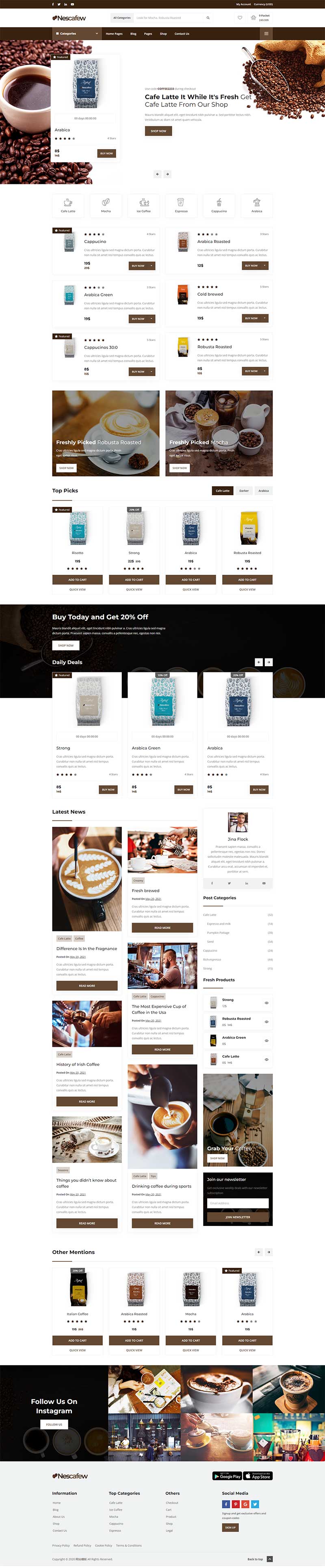 咖啡店铺电商网站模板是一款适合咖啡店,咖啡酿酒厂,咖啡品牌类型网站模板