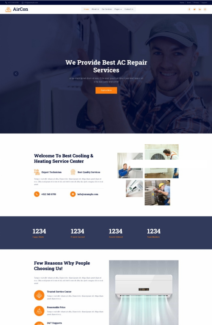 家电设备维修服务机构网站模板是一款适合从事家电维修、清洗、装卸等服务机构网站模板下载。提示:本模板调用到谷歌字体库,可能会出现页面打开比较缓慢。
