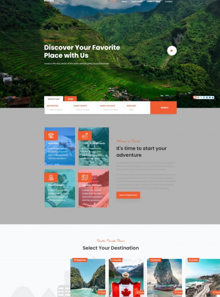 旅行社旅行机构服务网站模板是一款适合从事旅行服务行业网站模板下载。提示:本模板调用到谷歌字体库,可能会出现页面打开比较缓慢。