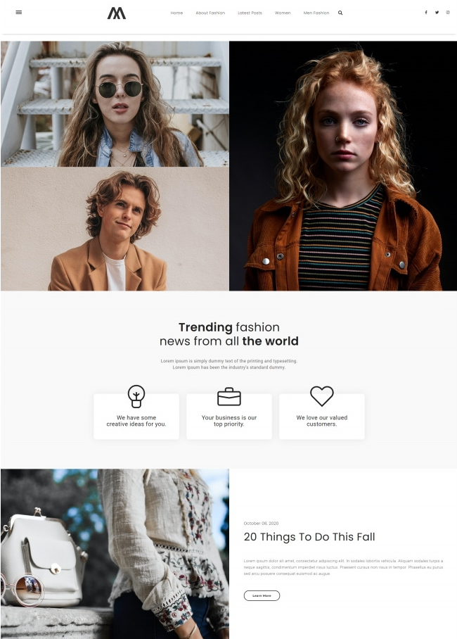 响应式时尚新闻资讯网站模板是一款分享时尚新闻资讯的响应式资讯网站模板下载。提示:本模板调用到谷歌字体库,可能会出现页面打开比较缓慢。