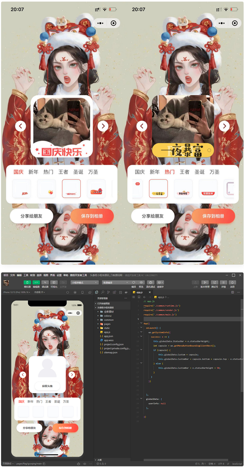国庆新年圣诞节日头像框小程序源码带流量主广告