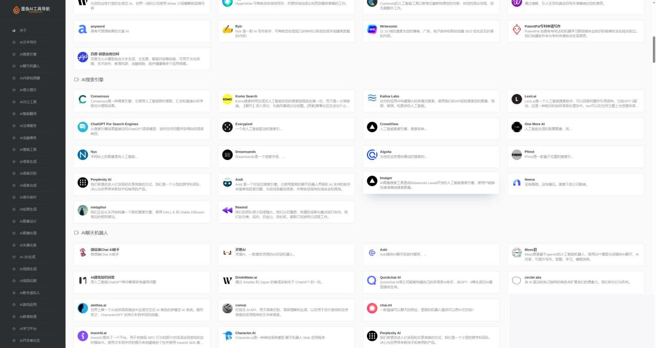 墨鱼AI导航系统,涵盖国内外500+AI工具集合精选网站,覆盖AI写作工具、AI图像工具、AI视频工具、AI音频工具、AI编程工具、AI音乐工具、AI设计工具、AI对话工具等AI工具全类,以及AI学习开发的常用网站、框架和模型