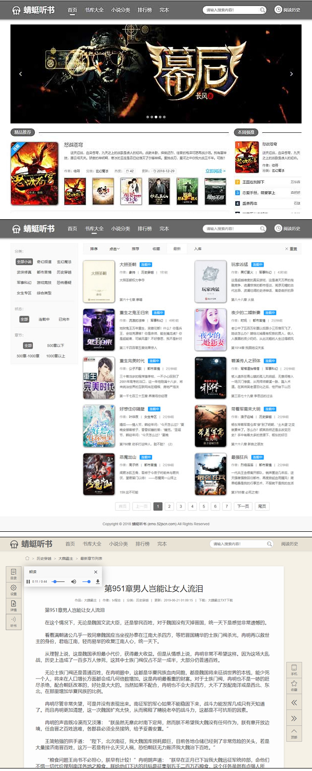 PTCms小说系统自动在线采集,小说聚合网站源码带手机端,4套模板,可以在线听小说!带4套模板,带10个采集规则!!!!php5.6+Mysql