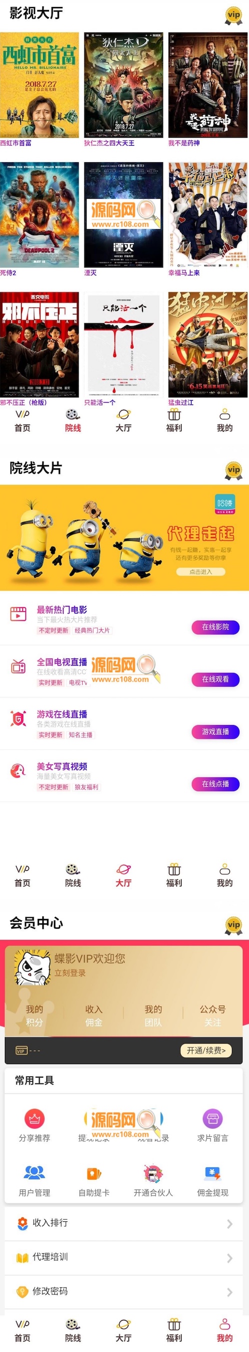 适用范围: 五级分销版蝶影全网VIP影视APP源码,安卓+苹果iOS双端+搭建教程