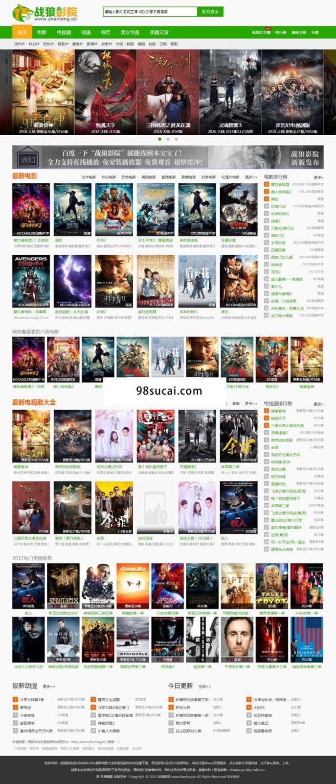 价值400元的海洋CMS影视网站模板仿战狼影院模板下载 PC+WAP模板,绿色风格的海洋CMS电影影视系统模板。