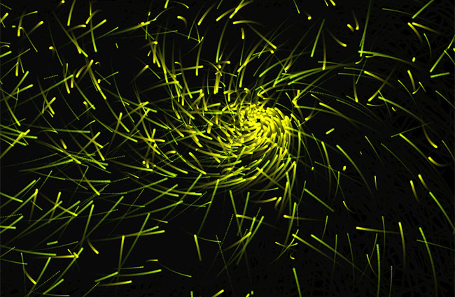 HTML5发光粒子游走动画特效是一款基于HTML5 Canvas实现的全屏跟随鼠标汇聚游走粒子特效。
