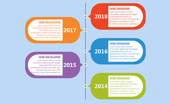 彩色垂直时间轴CSS3样式是一款创意响应式时间轴样式布局代码。