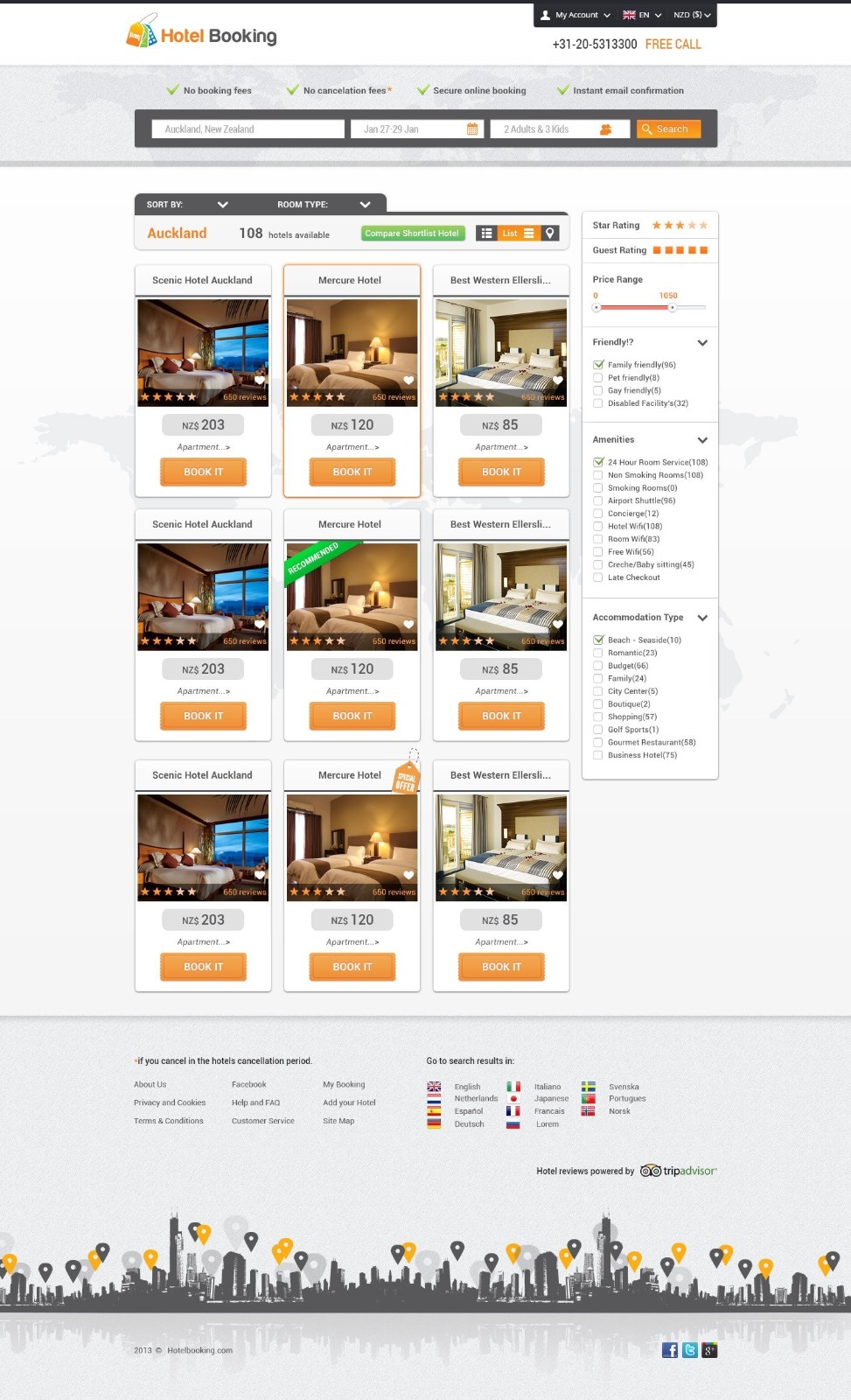 酒店免费预订PSD素材网页设计模板