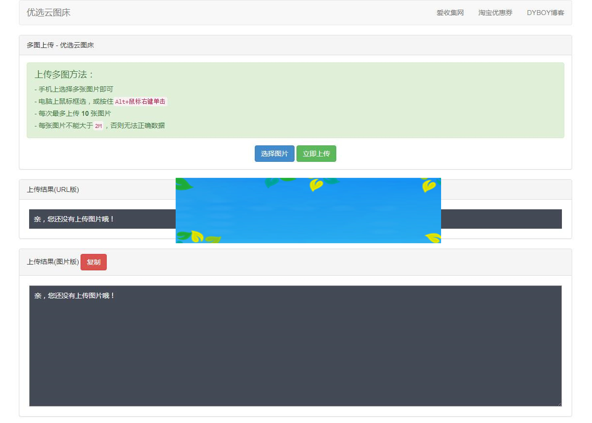 3. 访问:http://域名/CloudPicture/ 就能正常使用这款本地云图床啦!