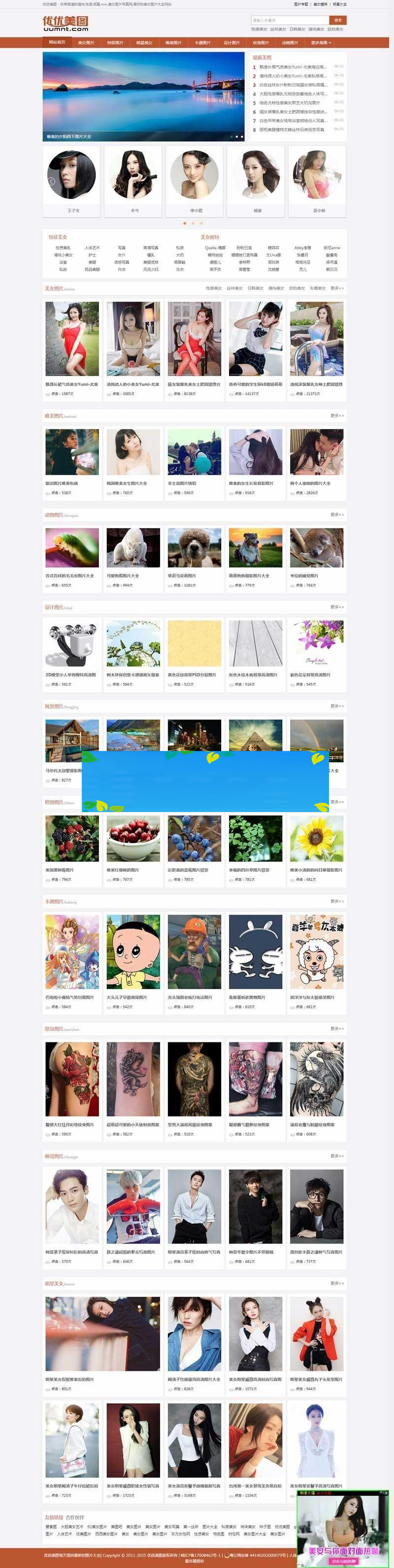 都是精挑细选的高清美女图片,网站漂亮图片分类齐全每天更新,网站内容适合各种用户口味界面简洁加载速度快,广告位多适合投放各种广告。