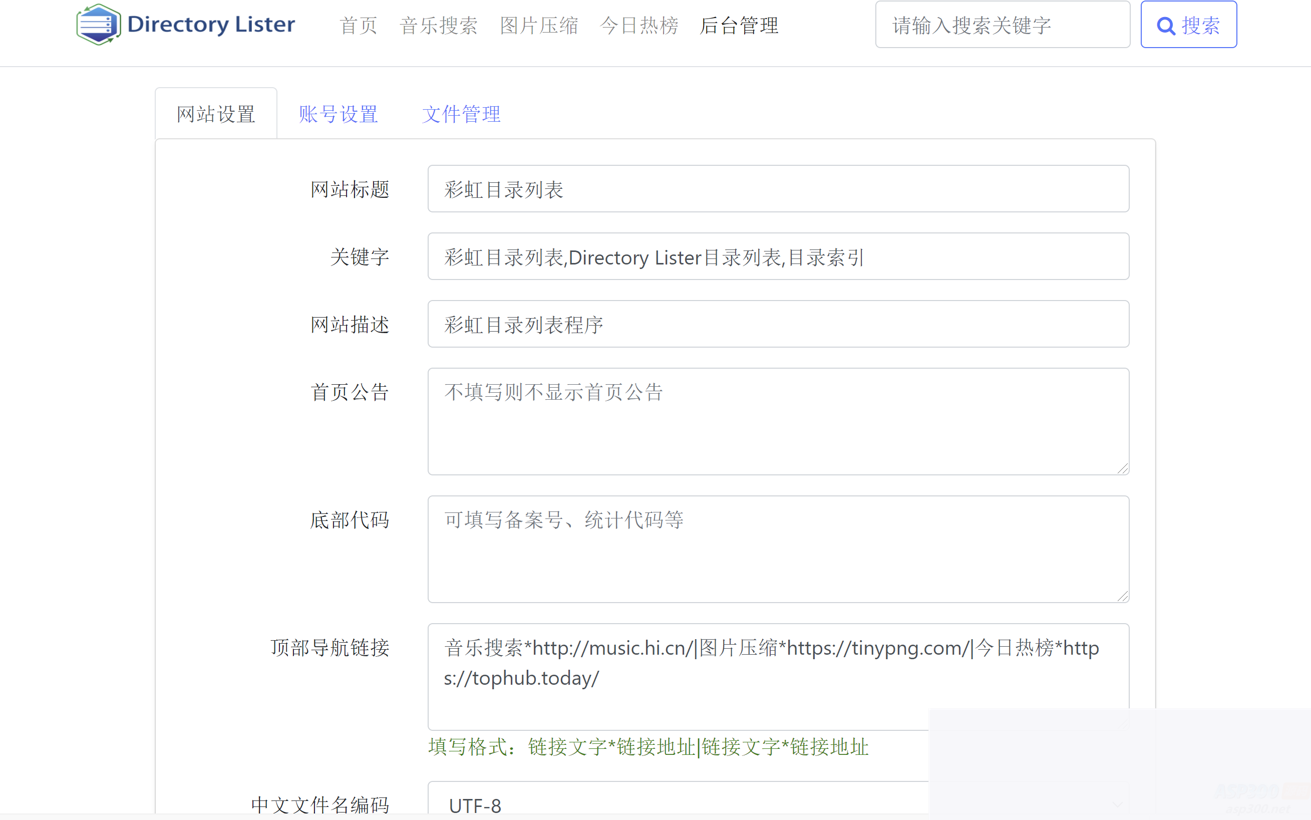 后台管理可设置网站标题、公告、底部代码等信息