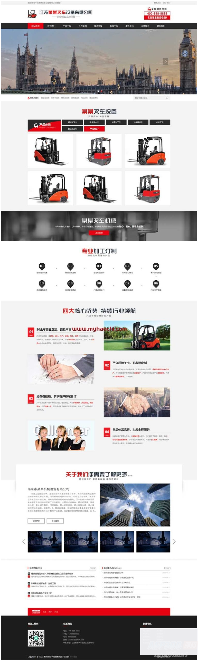 (PC+WAP)营销型叉车工程机械类网站pbootcms模板 红色机械设备制造网站源码下载