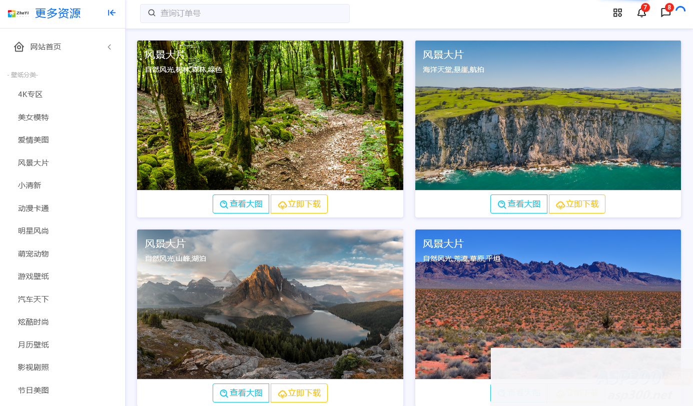 ZHEYI自动采集壁纸源码网站源码集成360壁纸接口。ZHEYI自动采集壁纸是一个使用360壁纸官方数据接口实现数据采集的PHP网站源码,让您可以快速搭建一个壁纸分享网站。