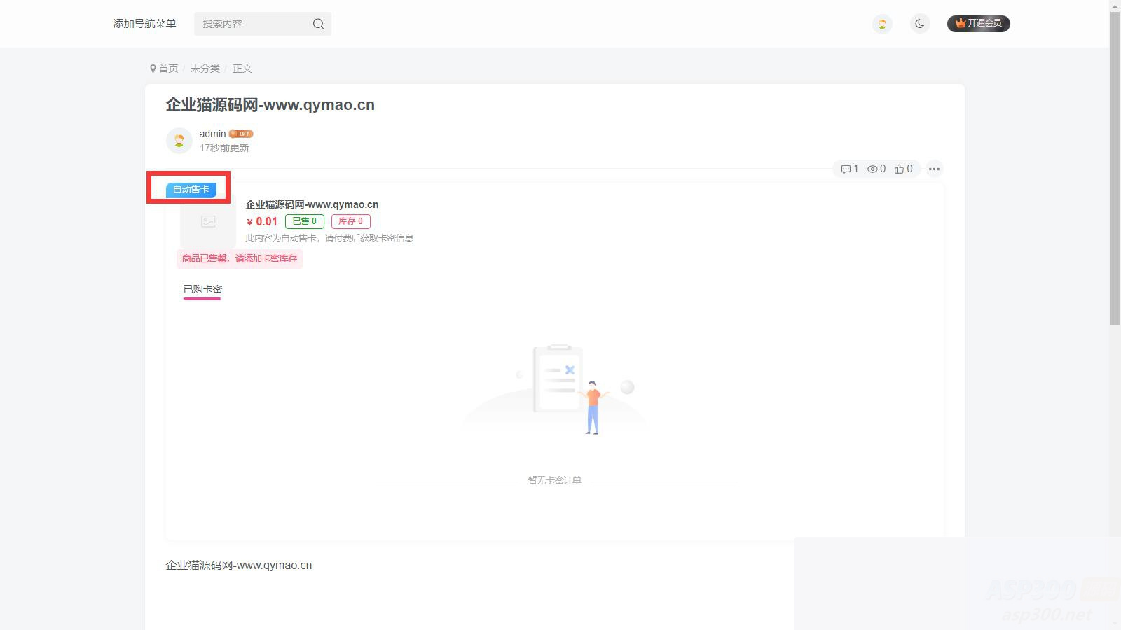 后台新建新文章,然后选择自动售卡