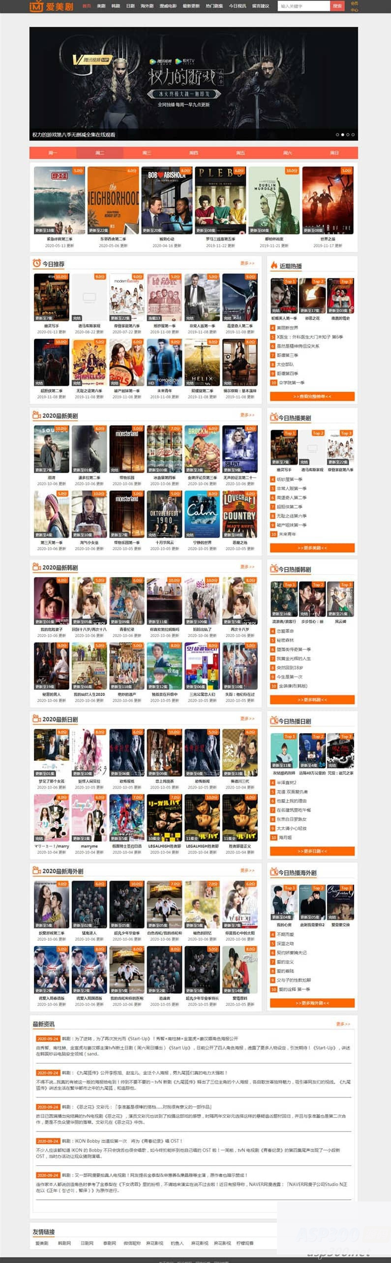 海洋CMS仿爱美剧网站模板 自适应手机端,内含 视频 资讯 留言模块。