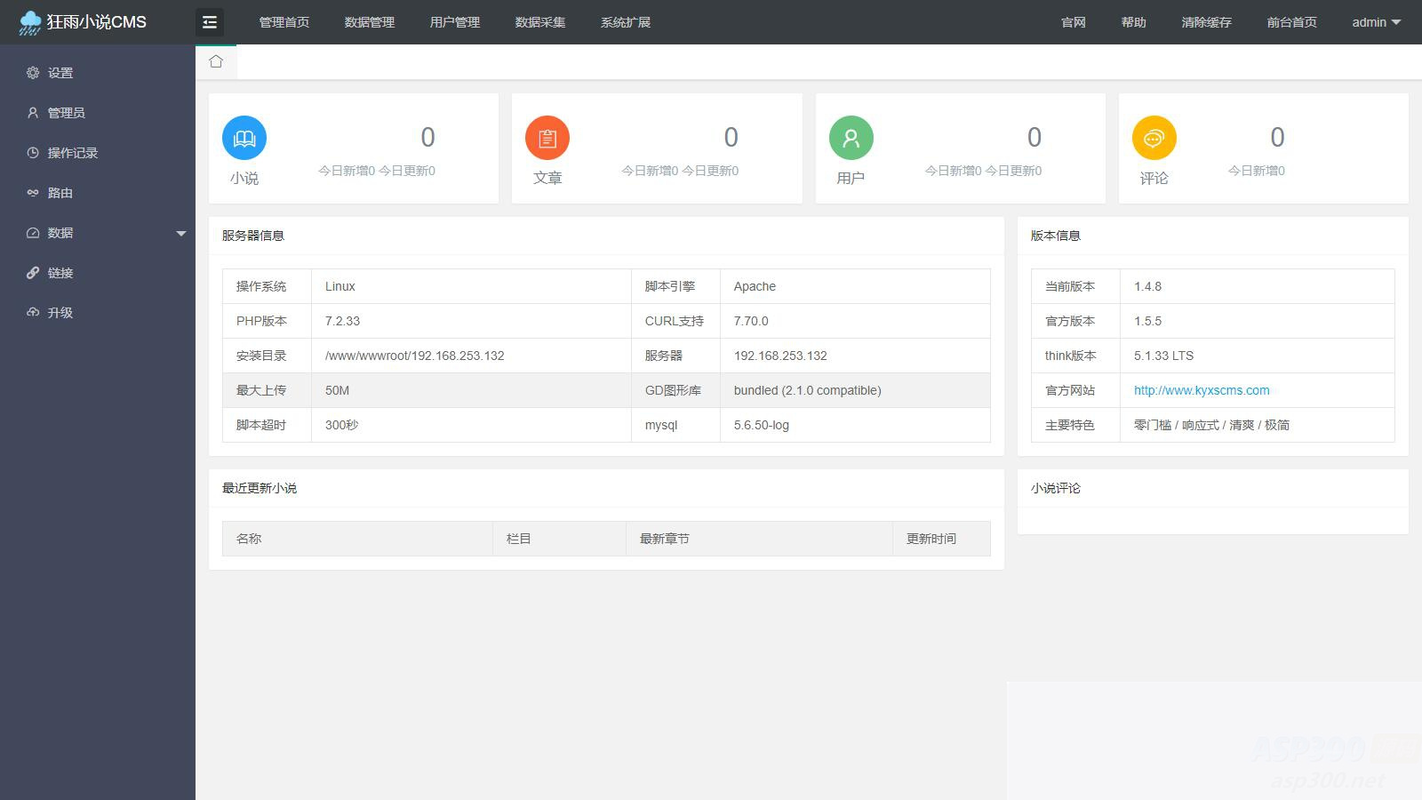 狂雨CMS的小说系统,后台看着挺方便的,但采集规则需要自行注册该采集联盟后获取