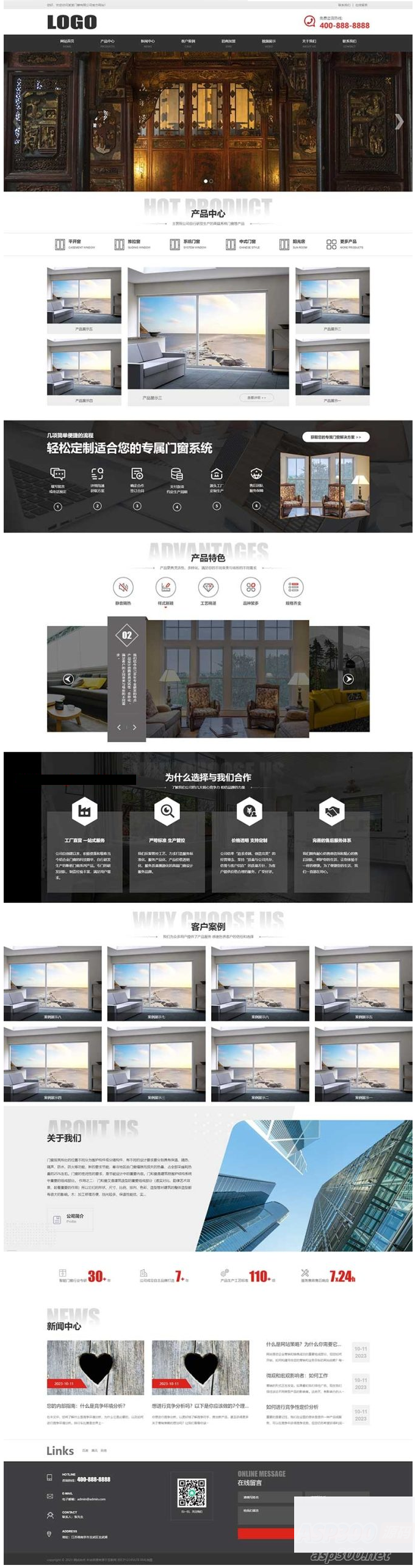 PbootCMS内核打造的网站模板,适用于门窗门业等企业,也可轻松适配其他行业,只需替换文字与图片即可;