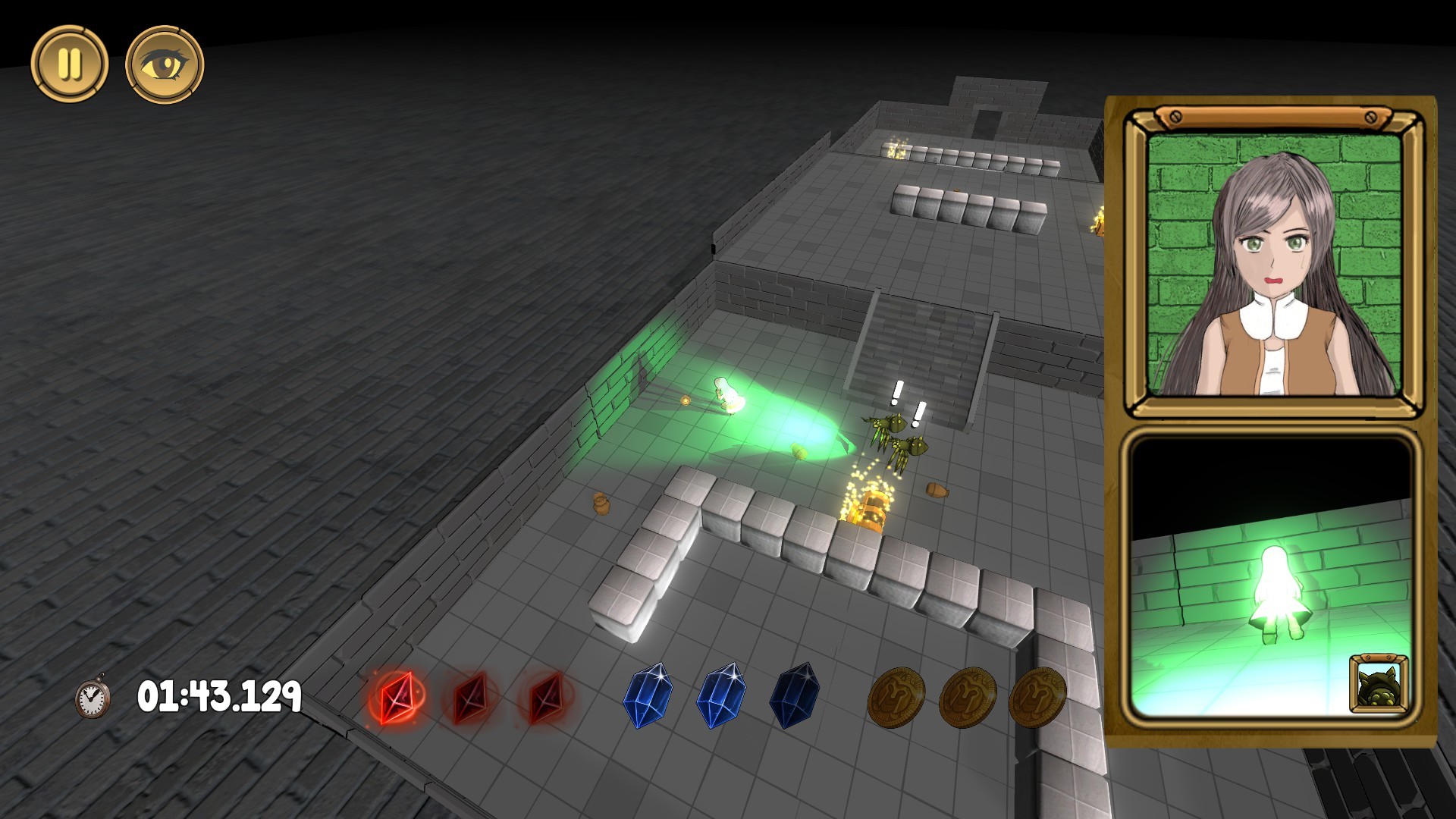 是一款操作盗贼少女收集财宝,以到达终点为目标的机密任务游戏。为了不被怪物发现,请一边巧妙地隐藏盗贼少女,一边操作鼠标以到达终点目标。盗贼少女因为无力而不能和怪物直接战斗。请使用地牢内的积木撞倒怪物,或是要被怪物发现时的紧急回避动作来通过关卡。