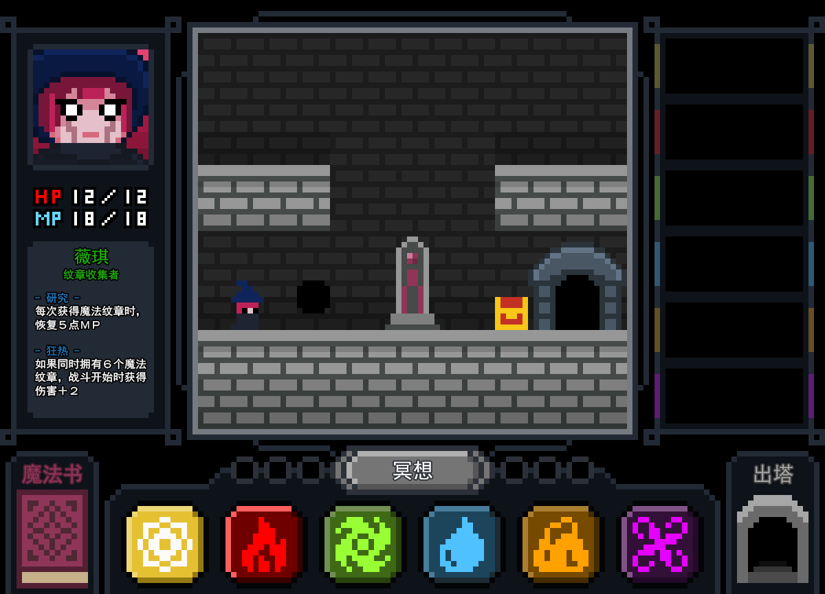一款轻度rogue的地牢类游戏 使用不同元素组合魔法进行战斗