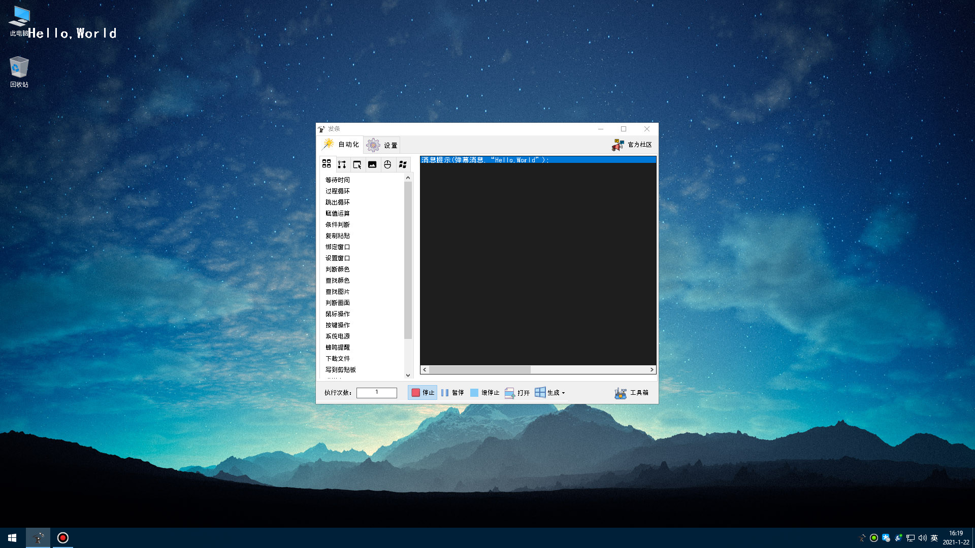 发条是基于C语言开发的快捷命令自动化工具,将枯燥难懂的编程代码集成中文命令,用户通过可视化界面制作自动化流程,或在创意工坊导入自动化流程动作。