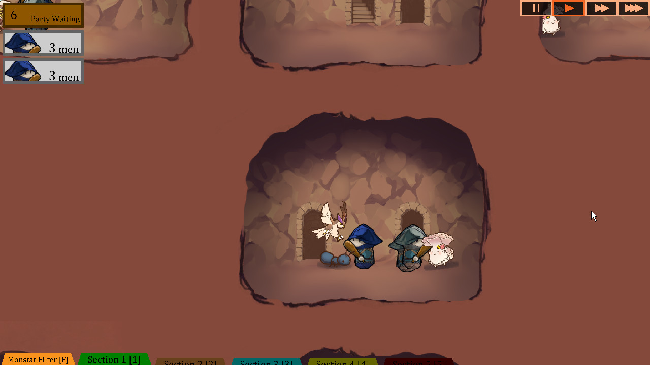 冒险者会入侵你的地下城,目标是地下城最深处的地下城核心。如果冒险者到达最深处,破坏了地下城核心,你就输了。你必须消灭冒险者,防止他们攻击地牢。成功指挥你麾下的怪物击退入侵的冒险者。