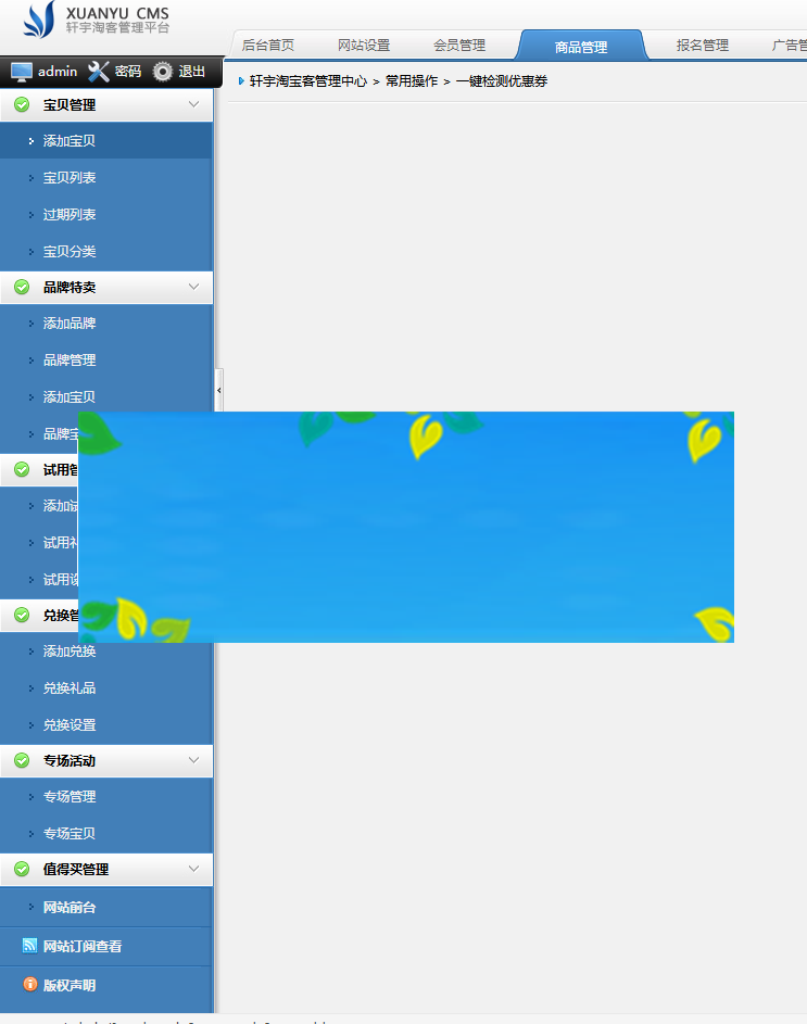 会员管理系统,带淘口令,手机版淘口令,商品采集系统带优惠劵自动采集,单独商品添加,商家报名系统,广告管理系统,值得买采集,试用商品添加,品牌商品添加等一系列功能。赠送淘易通商品发布功能