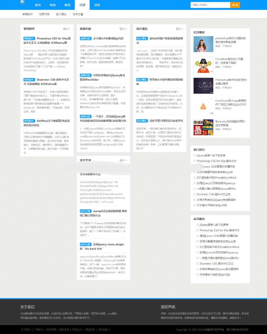 织梦dedecms蓝色风格站长资源素材教程网站源码下载