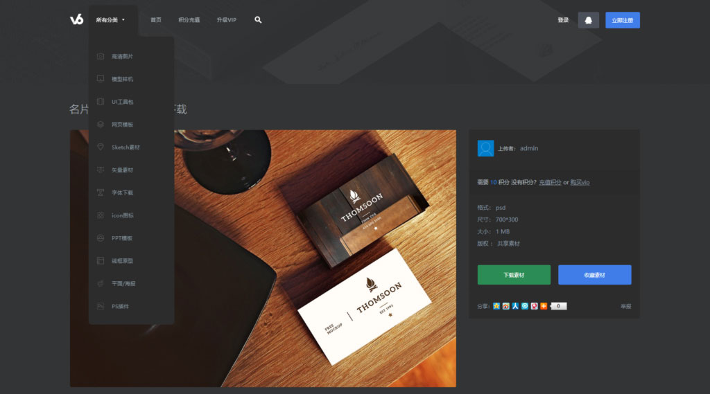 织梦dedecms黑色精美仿v6design设计素材图片资源下载网站模板