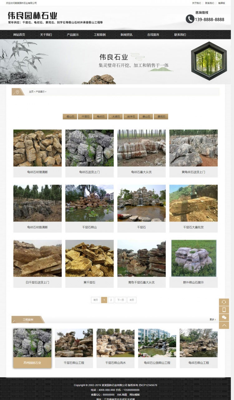 3、适用于园林石业织梦模板、假山石材网站源码;