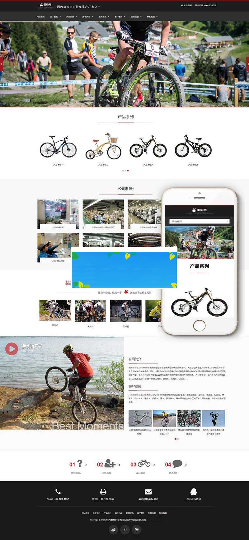 织梦最新内核开发的模板,该模板属于企业通用类、休闲运动自行车、山地车、手推车类企业都可使用,