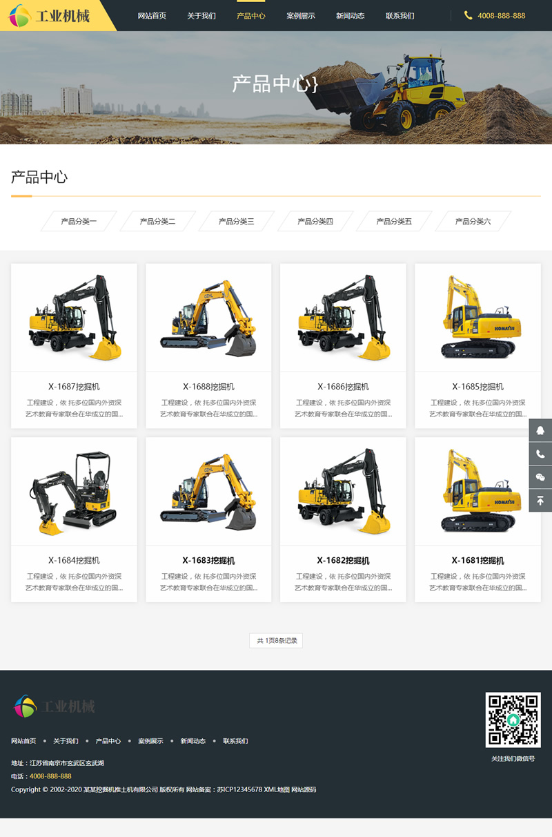 3、适用于推土机挖掘机网站模板、工矿机械设备网站源码;