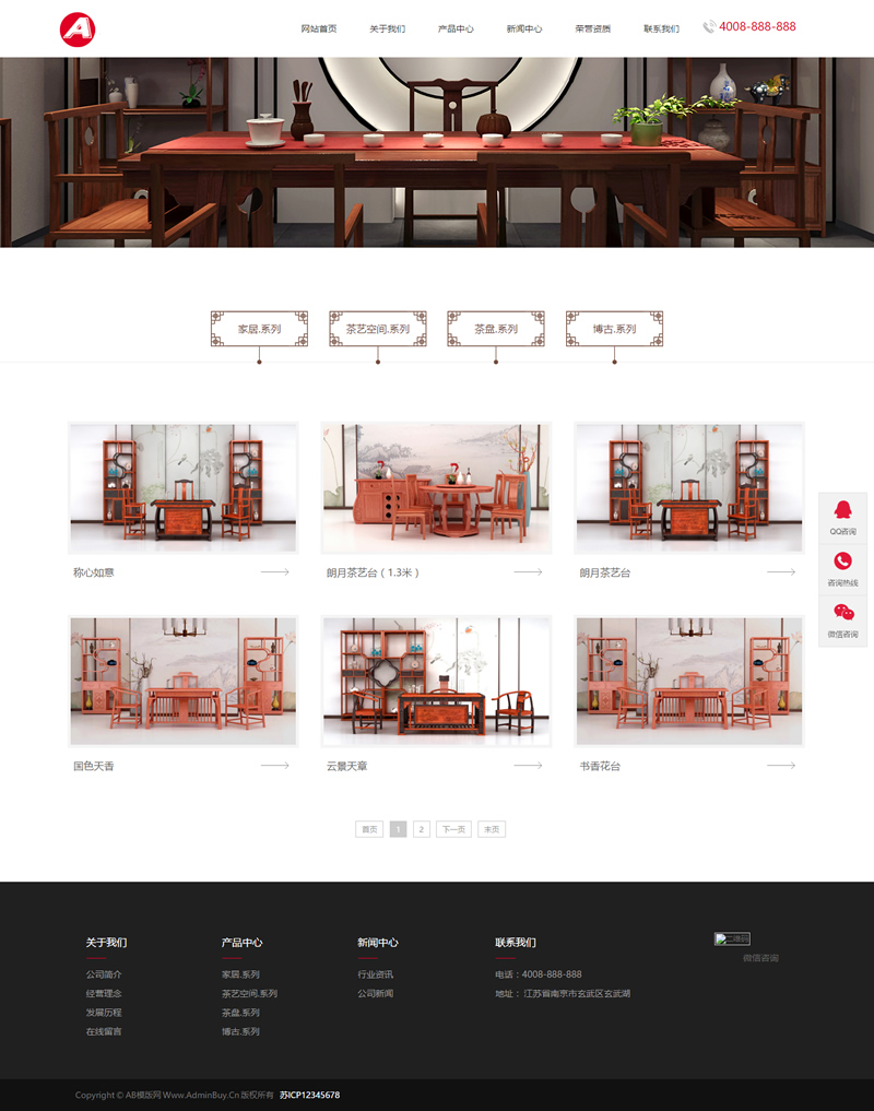 3、适用于茶几茶具网站源码、茶具桌子织梦模板;