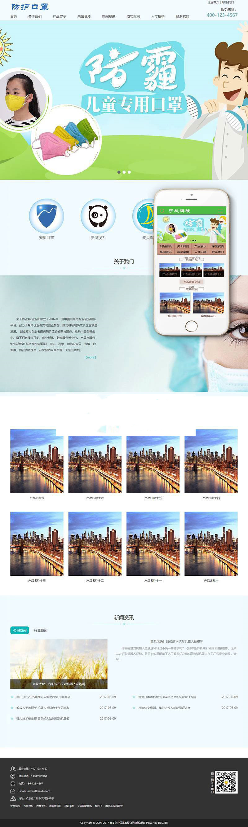 织梦dedecms儿童医疗防护口罩公司网站模板(带手机移动端)