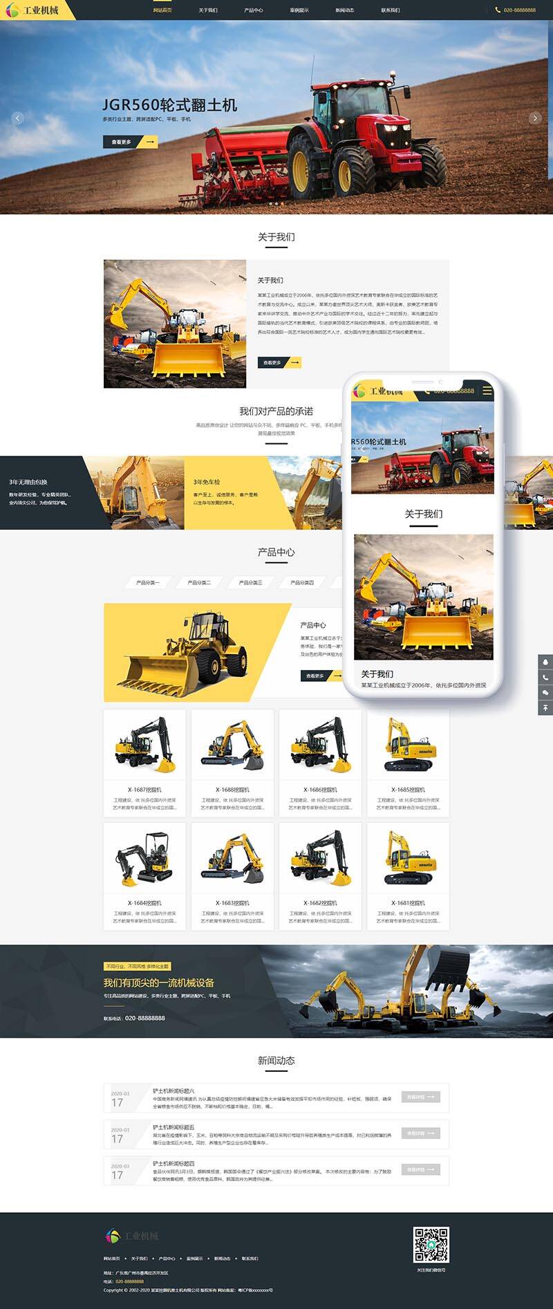 响应式推土机挖掘机机械类网站织梦模板(自适应手机端)+PC+wap+利于SEO优化