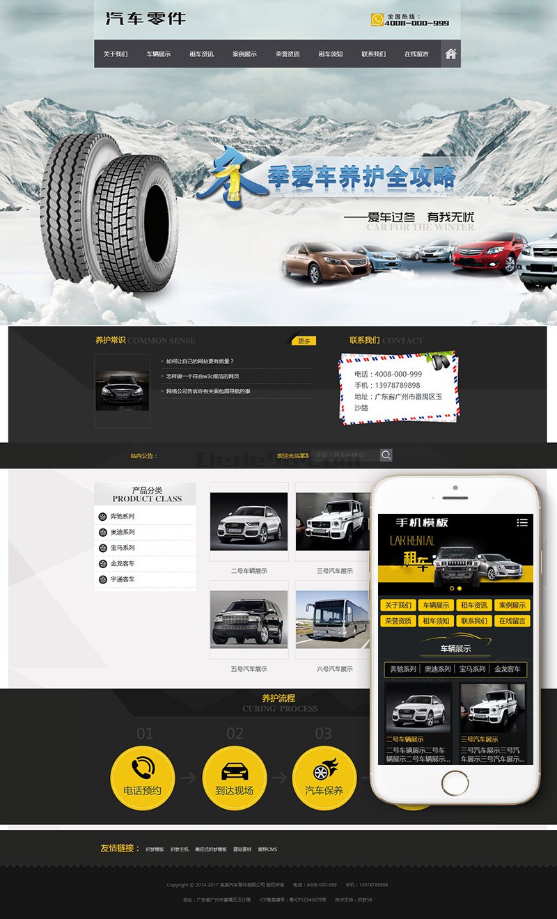汽车配件零件养护类织梦模板(带手机端)+PC+移动端+利于SEO优化