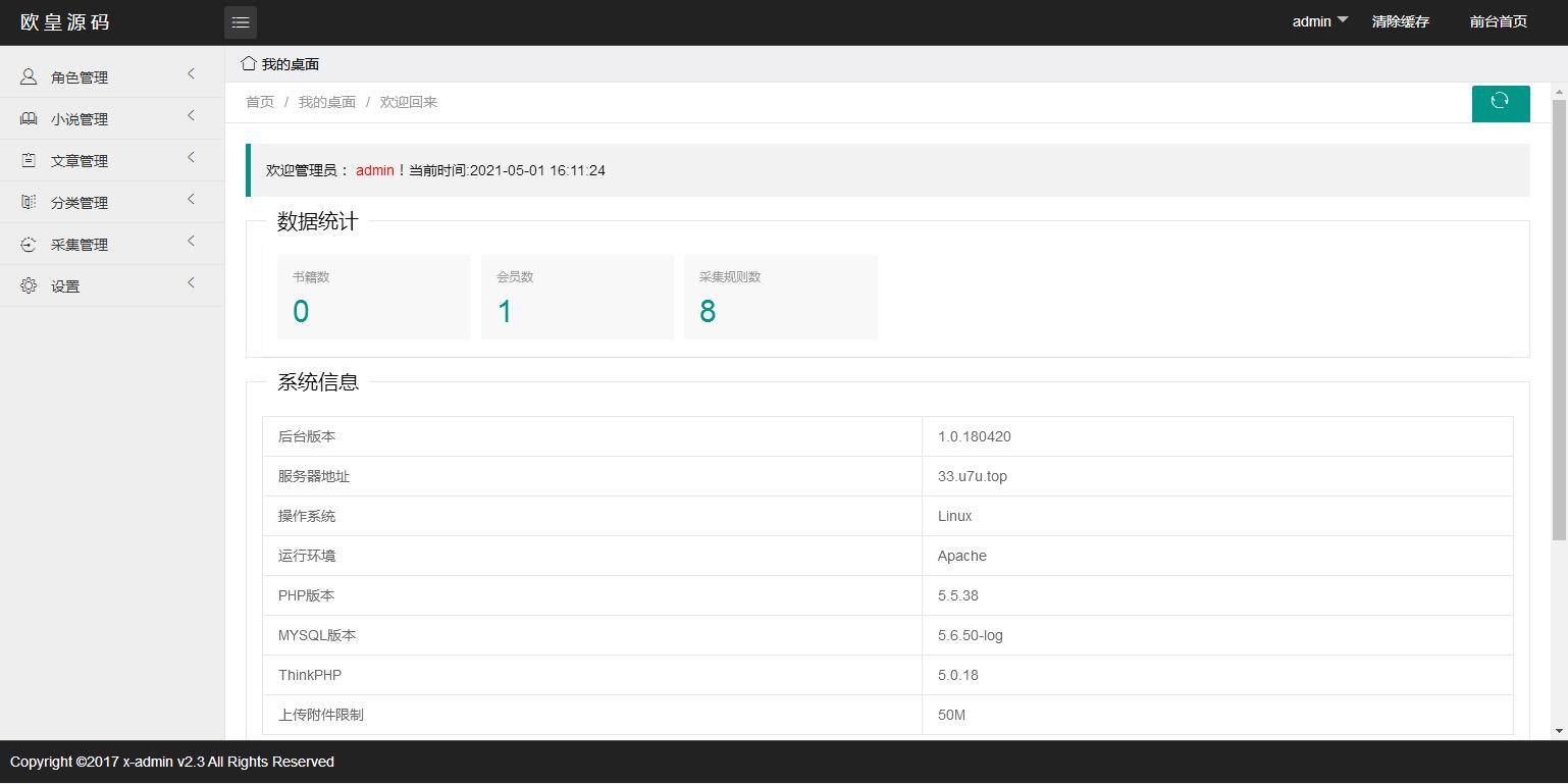 php5.5,需开启伪静态伪静态为thinkphp