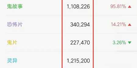 像鬼故事、恐怖片扥断更这类关键词在微信搜索指数上搜索热度也比较高,那么针对视频号可以出一点鬼故事的音频或者故事评书,都是不错的选择。