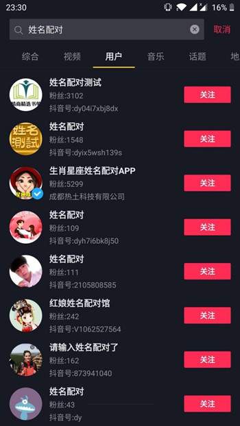 “姓名配对”这个关键词的用户粉丝少,可能大家没有意识到什么。