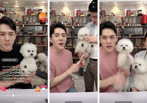 几乎每场直播一开始,佳琦都会先让狗狗们和粉丝们打招呼(给大家“拜一拜”,感谢大家),营造一个轻松的直播间氛围。