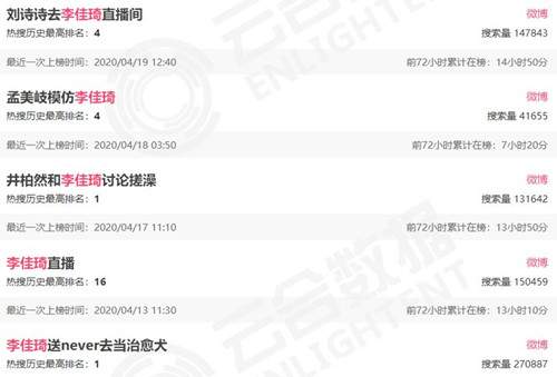 李佳琦有关的热搜话题 · 图片来源:云台数据