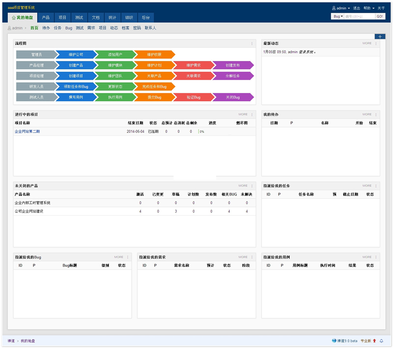 5、事务管理:包括todo管理,我的任务、我的Bug、我的需求、我的项目等个人事务管理功能。