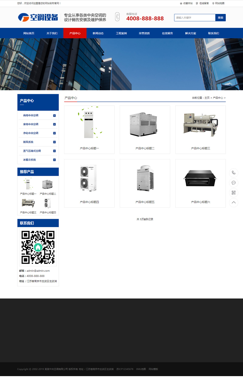 3、适用于营销型网站模板、中央空调网站模板、型制冷设备网站源码;
