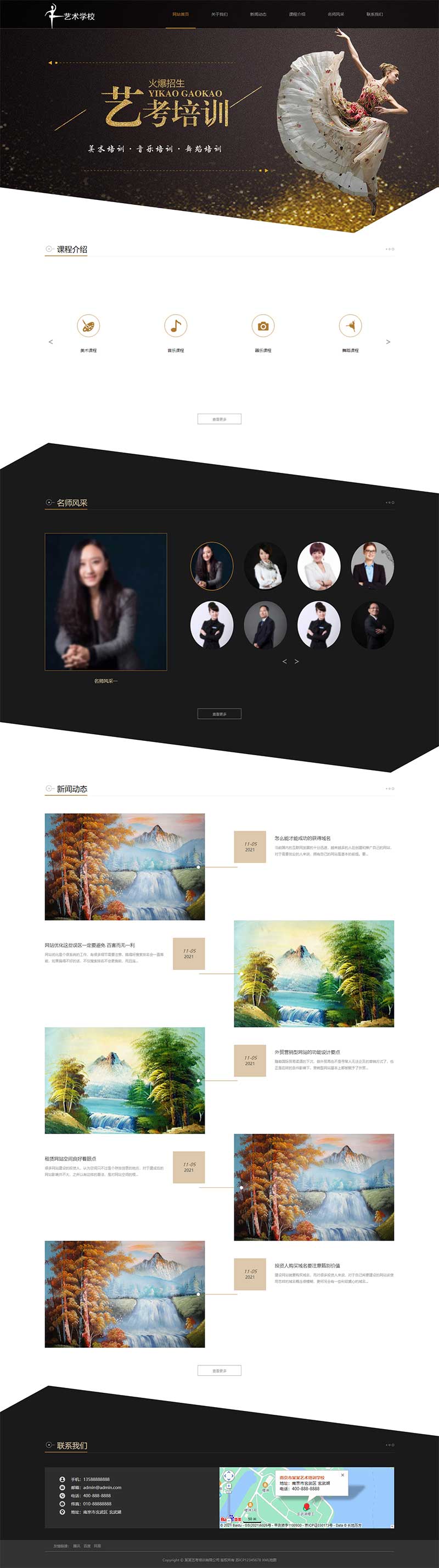 PbootCMS内核开发的网站模板,该模板适用于艺考培训学校、艺术培训机构网站等企业,当然其他行业也可以做,只需要把文字图片换成其他行业的即可;