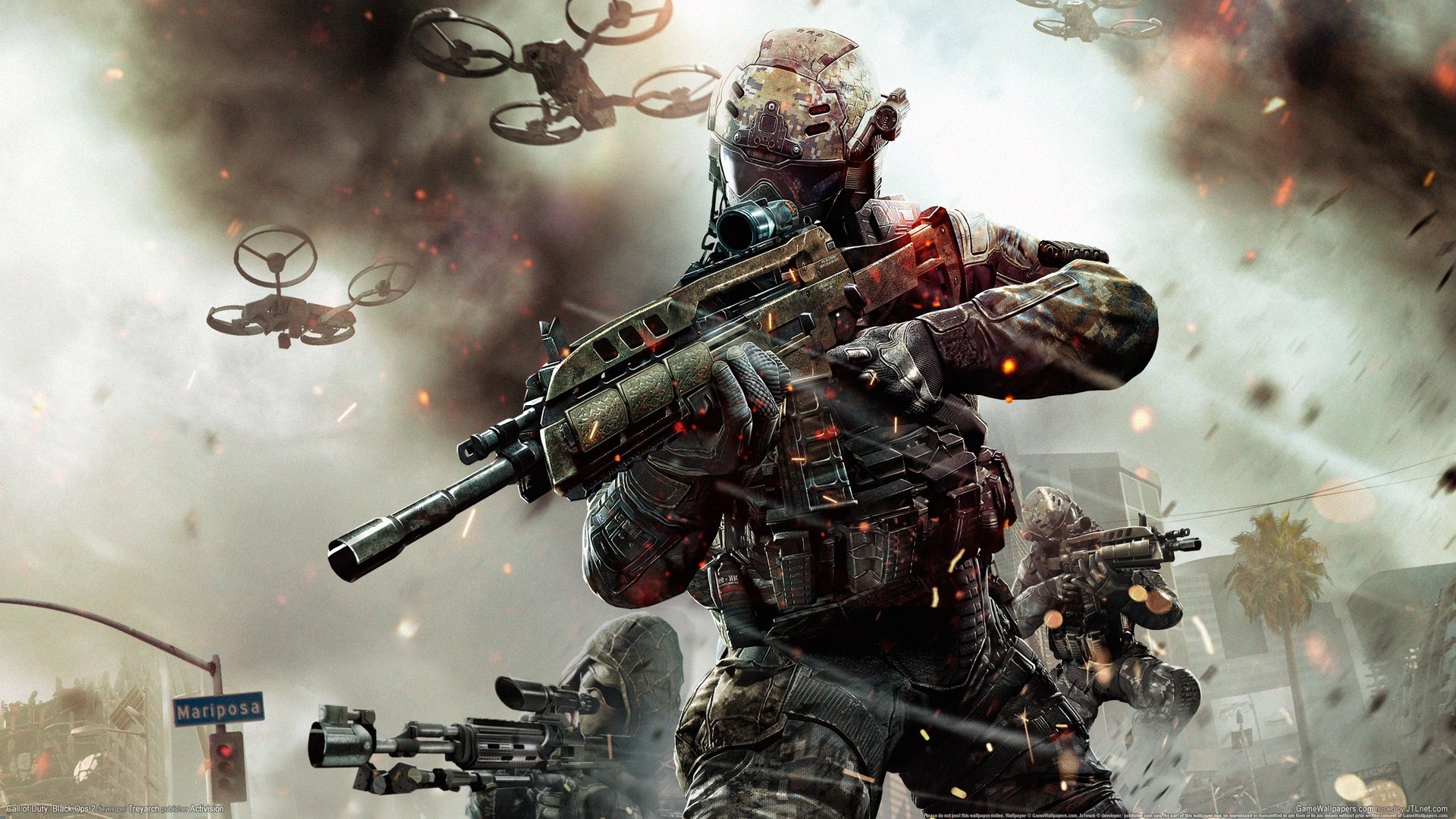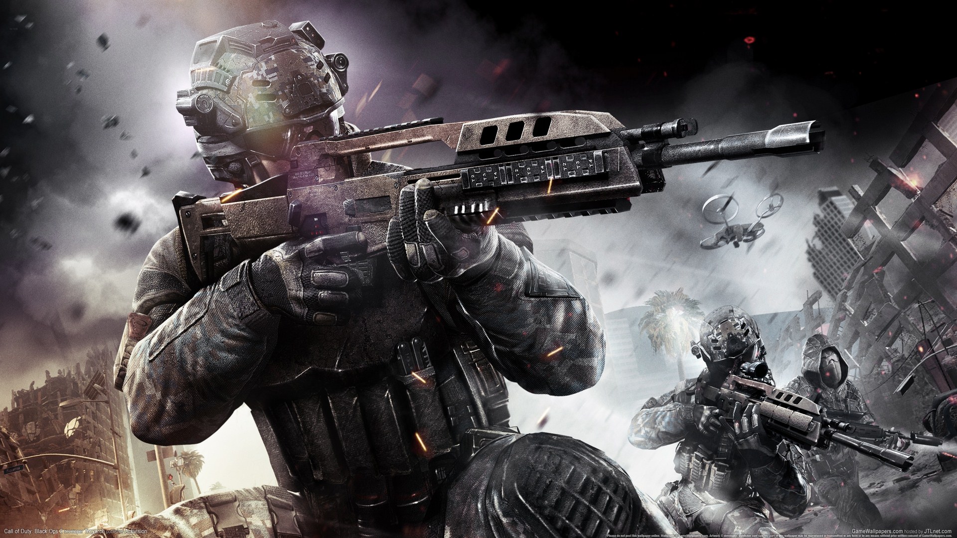 《使命召唤9:黑色行动2(Call of Duty:Black Ops 2)》是由Treyarch制作,Activision发行的一款第一人称FPS游戏,是人气系列《使命召唤》的第九部正统续作。本作将带领玩家进入未来战争。本作依旧沿用IW引擎,但令人高兴的是加入了DX11技术的支持,可谓一大进步。本作的动作性大幅加强,战斗规模翻倍,可以说是《使命召唤》系列的一次大跨越。