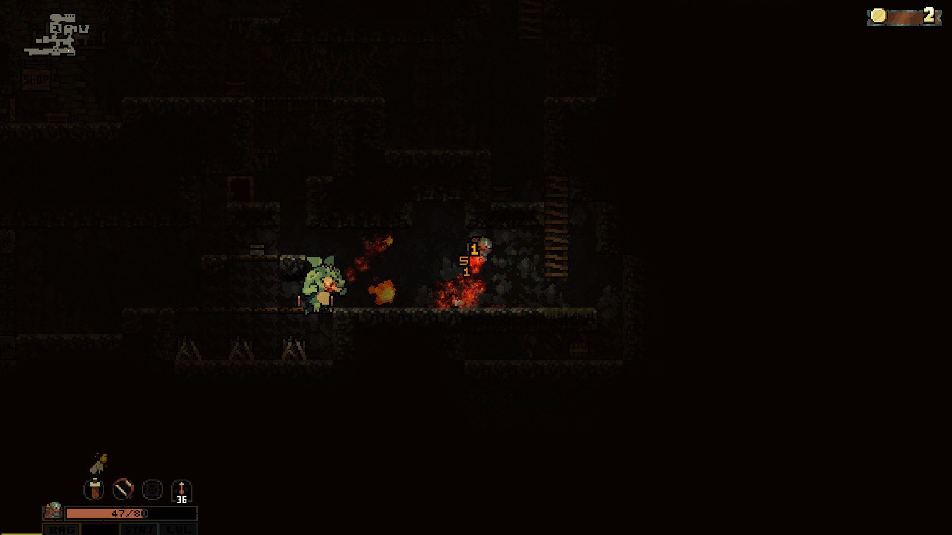 《勇闯地穴》是一部Roguelike像素风格的横版动作冒险游戏,拥有自行生成的关卡。设定在一个充满怪兽、恶魔和恶棍的奇幻黑暗世界。不管危险,来到这片无情之地的人都想获得金钱、权力和声望。 最近的一则传言说在森林的尽头有一个山洞,在洞里面最深不可测的地方守卫着大批珍宝。尽管已 经有一批无畏的探险者进入山洞,但没有一个人能够成功回来。但是你并没有被这些吓到,你坐上 大篷车开启了自己的旅程……你可要小心了,因为在游戏中,你一旦死亡,就不会再复活了。