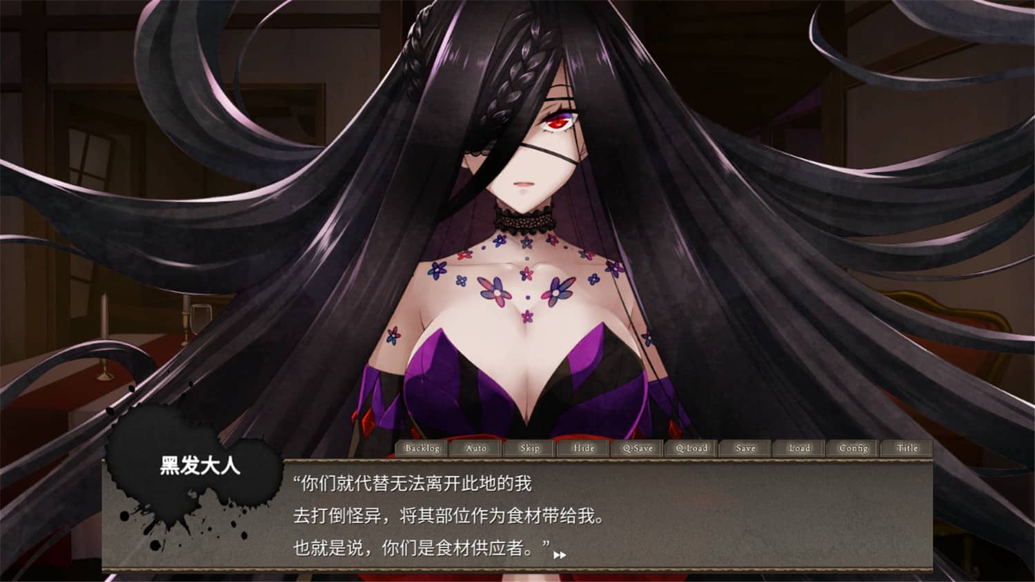 被名为“黑发大人”的怪异附身的主角和同伴等三人,受到她的命令而前去收集怪异的食材。主角需要用能够听到人们心声的‘黑发大人之耳’,以及能够攻击怪异的 ‘黑发大人之手’,与潜藏在日常中的黑暗进行战斗。
